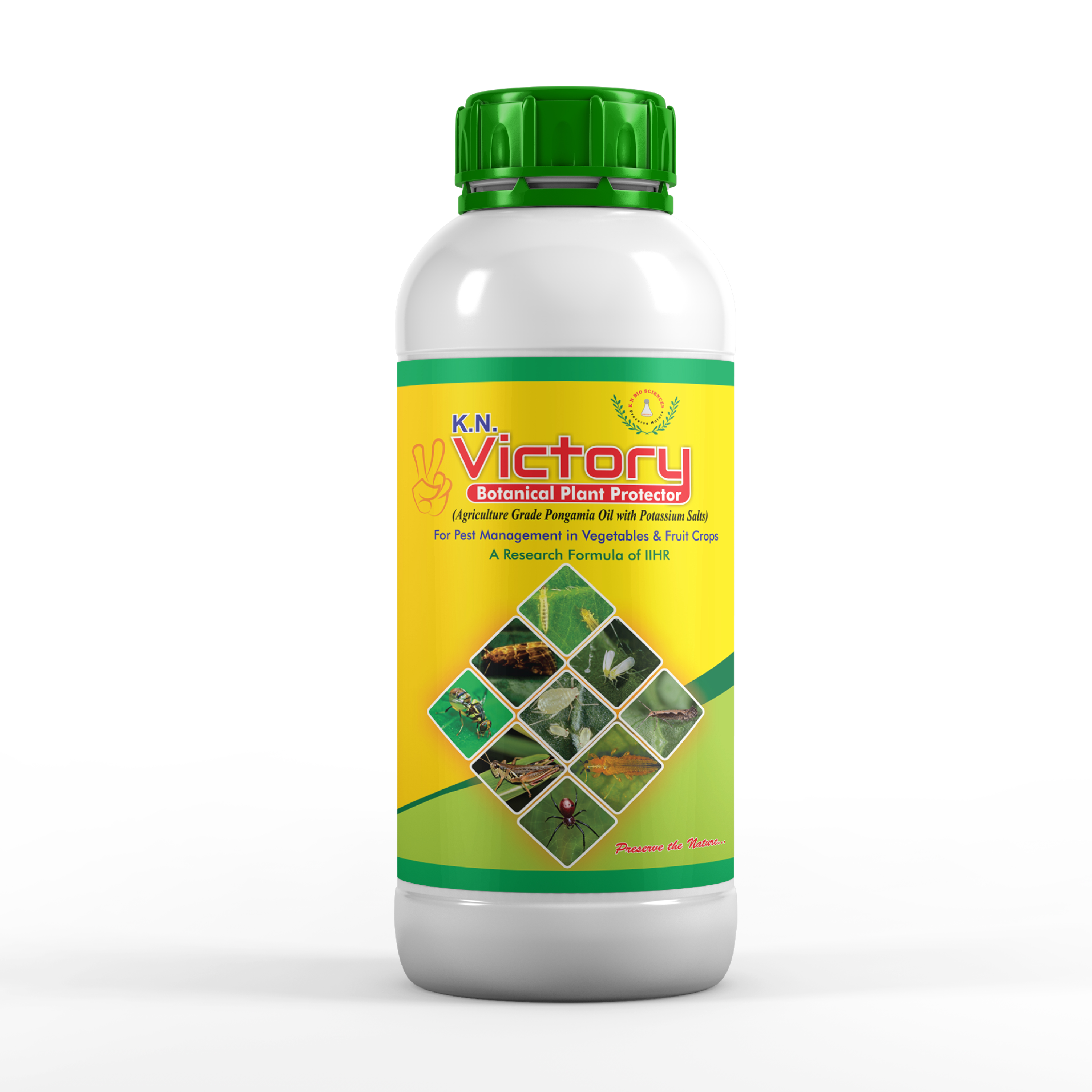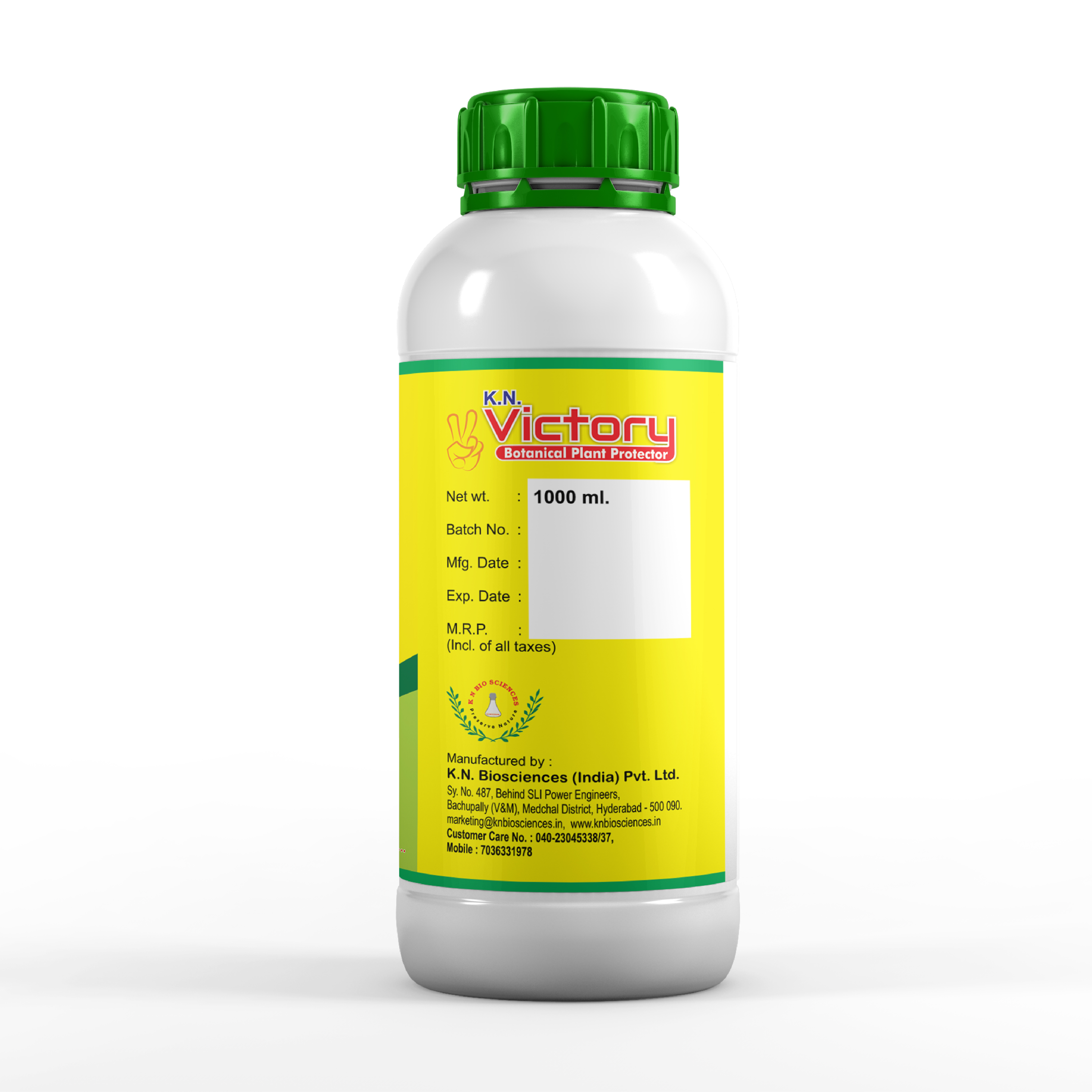 Mode of Application/Dosage : It is recommended to take 150 grams of KN Victory in 20 lts bucket and add 4 to 5 liter of water , squeeze and mix until the product is dissolved in water. ( Can soak before night for better result ) Filter the dissolved solution through a nylon net or tea filter and make the solution for 20 liters by adding water to that . Dosage : 7.5 grams of KN Victory in 1 liter of water and spray should be done only from 6 - 11 am and 4 - 6.30 pm onward.
